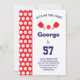 Rot-weiß Pickleball Geburtstagsfeier Einladung. Vollständig anpassbar. Zwei gekreuzte Pickleball Paddles und rotes Pickleball.