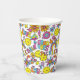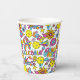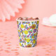 White Paper Cups mit Groovy, Retro 90er-Stil Pickleball-Muster mit gelben Pickleballs und weißem Hintergrund. Großartige Ergänzung Ihres Pickleball-Party oder Ihres Geburtstags