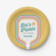 Fügen Sie diese lustigen Papier-Teller zu Ihrem nächsten Pickleball-Party hinzu. Design bietet eine Retro-Streifen Kontur eines Pickleball Paddle und die Worte "Let's Pickle" in einem lustigen Schriftart. Fügen Sie einfach Ihren eigenen Text hinzu - Spielername, Pickleball Club/Turniername, etc. Ideal für Erwachsene oder Kinder-Pickleball Geburtstagsparty, Mädels oder Typ Ansammlung, Pickleball Club Special Event oder Alltag Spaß. Lass uns spielen - der beste Sport aller Zeiten!!