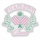 Dieser Aufkleber für Pickleball hat ein rosa und grüne Linien-Kunstbild von Paddeln und einen Ball, der von Lorbeerästen umgeben ist, mit der Phrase "Pickleball Queen". Die verwendeten Farben sind grün und rosa.