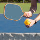Ein Karierter Rücken mit Mitte-Pickleball-Squad-Ball mit blauem Vorderpaddel