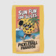 SUN FUN AND SLICES ist die kühne, spielerische Schlagzeile dieses lebendigen Handtuches. Das PICKLEBALL PARADISE wird unten gedruckt, um das Thema Tropen zu vervollständigen. Das Design präsentiert ein fröhliches, mit einer Sonnenbrille bekleidetes Massivholz aus Pickleball, ein schwarzes Shirt, graue Hosen und grüne Sneakers, das über einen sonnigen Strand mit Paddel in der Hand läuft. Ein strahlender Sonnenuntergang, Palmen, Ozeanwellen und fliegende Vögel schaffen ein lebendiges Urlaubsambiente. Ideal für Pickleball-Clubs, Teams oder Turniere, die in einem Touristenort oder am Strand stattfinden. Dieses große Badetuch eignet sich perfekt für Pickleute, Fans, Coach oder Spieler, die stilvolle, lustige und sportliche Lieben haben. Ob Sie in der Küche essen oder sich nach einem Spiel entspannen, dieses Handtuch bringt den Geist des Pickleball Paradieses zum Leben.