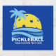 Ein lustiges Pickleball-Bier oder ein Weinetikett mit einem Pickleball "Sonne", gerahmt von einer tropischen Palme und blauen Ozeanwellen. Fügen Sie einfach Ihren eigenen Text zu personalisieren.