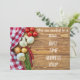 Eine Einladungskarte passend für ein Picknick mit Familie oder Freunden. Völlig kundengerechter Text mit Illustrationsentwurf des Sommerpicknickgemüses einschließlich Tomaten, Pilze, Zwiebeln und Paprikas mit einer Ginghampicknickdecke. Konnte für jährliches Firmenpicknick oder die Mittelbeschaffung Ereignispicknick auch verwendet werden.