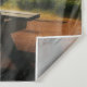 Dies ist ein Wandteppich mit einer Camping-Szene, die einen Picknicktisch enthält.