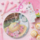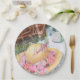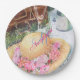 Romantisches Picknick im Park mit glitzerndem Wasser und Gläsern, weißes Spitzentablett, brauner Körbchen und einem schönen, blumengeschmückten Sommerhut. Blume sind eine Mischung aus Rosa, Rot und Pfeffer. Maßgeschneiderte personalisierte Party-Teller für jeden Anlaß. Das Watercolor Designbild stammt aus der Designerkollektion. Genießen Sie die Koordination Ihres Party-Ensembles, um Ihr eigenes Thema auszudrücken. Wenn Sie etwas Besonderes gewollt haben, kontaktieren Sie mich bitte unter sue.chorney@shaw.ca.