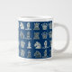 Tasse enorme comportant la conception d'échecs avec des pièces d'échecs d'obscurité et de lumière dans les rangées sur un arrière - plan bleu.