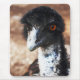 Dieses Bild zeigt eine nahe Aufnahme eines Emus, eines großen fliegenlosen Vogels aus Australien. Der Emu hat eine unverwechselbare, dunkelfarbene Ablagerung, einen scharfen Schnabel und auffallende orangefarbene Augen. Seine strukturierten Federn und sein einzigartiger Gesichtsausdruck verleihen ihm ein kurioses und intensives Aussehen. Der Hintergrund ist verschwommen, was den Vogel als zentralen Fokus hervorhebt.