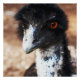 Dieses Bild zeigt eine nahe Aufnahme eines Emus, eines großen fliegenlosen Vogels aus Australien. Der Emu hat eine unverwechselbare, dunkelfarbene Ablagerung, einen scharfen Schnabel und auffallende orangefarbene Augen. Seine strukturierten Federn und sein einzigartiger Gesichtsausdruck verleihen ihm ein kurioses und intensives Aussehen. Der Hintergrund ist verschwommen, was den Vogel als zentralen Fokus hervorhebt.