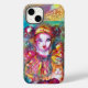 Farbenfrohe, lebendige und skurrile Aquarellmalerei in leuchtend roten, gelben, blauen, weißen, lila Farben, inspiriert vom Karneval von Venedig und der Commedia dell'Arte.