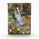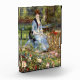 Pierre-Auguste Renoir - Dans les Rose. Niedliches Portrait einer jungen Frau in warmen Farben. Ein Mädchen sitzt auf einer Bank in einem schattigen Wahnsinn. Blume wachsen in der Nähe. Hinter ihr stehen hohe Bäume. Reproduktion berühmter Kunstbilder im öffentlichen Bereich.