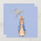 Pierre le Lapin sur fond bleu avec texte "Merci" en or.