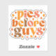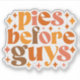 Dieses lustige und freche fallthematische Design zeichnet sich durch den spielerischen Satz "Pies Before Typ" in einem kühlen, Retro-inspiriert Schriftart aus. Der Text ist in einem kompakten, gestapelten Layout mit jedem Wort in einem anderen Schriftart-Stil angeordnet, wodurch eine dynamische und auffällige Komposition entsteht. Die Farbpalette umfasst warme Herbsttöne wie tiefe Orangen, reiche Braun und goldene Gelbtöne, die die gemütliche Atmosphäre der Saison perfekt prägen.