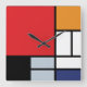 Piet Mondrian - Komposition mit großem rotem Flugz Quadratische Wanduhr