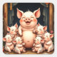 Pig Art – Mother & Piglets Quadratischer Aufkleber
