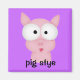 Funny Cartoon Schwein mit großen Augen mit einem Stift. Originelle Cartoon-Kunst von Taylor Addams.