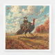 Alles Gute zum Erntedankfest Spaß! Ein amerikanischer Pilger fährt einen großen Truthahn wie ein Cowboy in der knusprigen Herbstluft voller fallender Blätter. Diese surreale Szene wurde als naturalistische Aquarellmalerei mit ein wenig KI-Unterstützung erstellt. Behalt es lustig diesen Erntedank Urlaub!