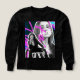 The design features a stylized black and white photo of a woman in a power pose, layered over a monochrome portrait with the Roman numerals MMXX (2020) covering her mouth, symbolizing a time of silent reflection or being silenced. The entire piece is energized by vibrant neon pink and blue abstract strokes and grunge/halftone effects, giving it a distinct Cyberpunk, Y2K, and Pop Art aesthetic. It’s a powerful, fashion-forward statement piece perfect for fans of edgy streetwear and modern digital collage art.