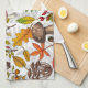 Pilze, Blätter, Nüsse und Beeren im Herbst auf Wei Geschirrtuch