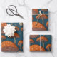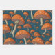 A. Muster aus orangefarbenen und weißen Pilzen vor blaugrauem Hintergrund auf Papierblättern.