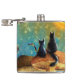 Niedliches Bild von zwei Katzen, die auf einem riesigen Pilz sitzen, in einem Wald voller Pilze, die die Herbstblätter beobachten, fallen gegen die Sonne und den blauen Himmel, um ein wunderbares Geschichtenbild zu schaffen. .