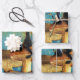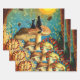 Niedliches Bild von zwei Katzen, die auf einem riesigen Pilz sitzen, in einem Wald voller Pilze, die die Herbstblätter beobachten, fallen gegen die Sonne und den blauen Himmel, um ein wunderbares Geschichtenbild zu schaffen. .