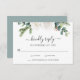 Recueillir les réponses des invités avec style avec cette carte RSVP rustique de verdure eucalyptus pin. Le design d'inspiration boho présente un feuillage peint à la main et un aspect frais et naturel. Parfait pour les mariages rustiques, boisés, hivernaux ou boho, cette carte ajoute une touche simple mais élégante à votre suite papeterie.