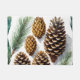 Dieses botanische Kunstwerk zeigt verschiedene Kiefernzapfen und Nadeln. Eine Aquarellmalerei im Stile eines Musters, geeignet für alle Jahreszeiten.