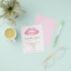 Weiche, rosa Lippen mit Imitaten, goldene Folienringe. *digital gerendert. Dieses Design hat keine Textur. Ein lustiges trendiges Design perfekt für jeden in der Modebranche. Einzigartiger und stilvoller Flyer, perfekt für Makeup-Künstler, Friseur oder Stylist. Originelles Design und von Maura Reed.