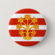 Round Button mit Design mit einer Fahne des historischen Landkreises von Westmorland in England, Großbritannien; weiß und rot gestreifte Fahne mit goldenem heraldischem Apfelbaum in der Mitte