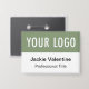 Personalisieren Sie einfach unser Rechteck Button Back Button Namensschild mit Ihrem Firmenlogo, Mitarbeiternamen, Jobtitel oder anderen benutzerdefinierten Text. Es hängt mit einem sicheren Button zurück. Verkauft in Salbei Grün und anderen Farben, und alle Farben sind anpassbar. Unsere Rechteckknöpfe sind 1,5 Zoll x 2,5 Zoll. Hergestellt in den USA. Keine Mindestbestellmenge und keine Einrichtungsgebühr.