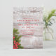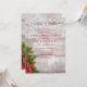 Set die Bühne für ein festliches Fest mit dieser rustikalen Weihnachtsfeier Party Einladung. Mit einem klassischen Holzhintergrund mit Saitenlichtern, Kiefernästen und lebendigen roten Beeren, vereint dieses Design die Wärme und Freude der Ferienzeit. Die elegante Typografie in Rot fügt eine traditionelle Touch hinzu, die sich ideal für eine intime familiäre Ansammlung oder für einen größeren Feiertag eignet. Personalisieren Sie die Details für eine einmalige Einladung, die Ihr Weihnachtsfest zum Leben erweckt.