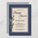 Cette invitation à la douche nuptiale Pine Blue Winter combine une bordure élégante et bleue poussiéreuse avec d'élégantes boucles de pins à feuillage persistant pour un look classique mais rustique. Le feuillage botanique de verdure avec type calligraphie sur un arrière - plan beige crée une ambiance naturelle pour une célébration de Noël ou de destination forestière.