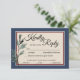Diese Pine Blue Winter Hochzeitskarte kombiniert eine klassische, formell staubblaue gerahmte Grenze mit eleganten, immergrünen Pinienbäumen für einen klassischen und dennoch rustikalen Look. Das botanische Grün mit Kalligraphie auf beigem Hintergrund schafft ein naturorientiertes Ambiente für Weihnachten- oder Waldheiratsfeiern.