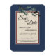 Diese Pine Blue Winter Hochzeit spart den Dattelmagneten, der eine klassische, formale, staubblaue gerahmte Grenze mit eleganten, immergrünen Pinienbäumen für einen klassischen und dennoch rustikalen Look verbindet. Das botanische Grün mit Kalligraphie auf beigem Hintergrund schafft ein naturorientiertes Ambiente für Weihnachten- oder Waldheiratsfeiern.
