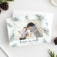 Un design moderne et élégant de carte de vacances avec votre photo préférée orientée paysage ou horizontale entourée de pics vert d'eau et de la verdure de Noël. "Paix sur Terre" apparaît sous la forme de lettres manuscrites. Personnalisez avec votre nom de famille le long du bas.