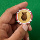 Eine niedliche Eule aus Kiefernkegel-Waage. Anpassen, indem Sie den Chip-Wert oder anderen Text auf der Rückseite hinzufügen.