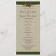 Pine Cones et Burlap programme de mariage de conception rustique en vert bois pour compléter les invitations. Modèle catholique.