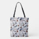 Eine Tasche mit einem schönen Muster. Kiefernzapfen, Federn, Kiefernnadeln und Beerensprigs. Rustikales Aquarelldesign.