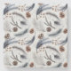 Ein Untersetzer aus Stein mit einem schönen Muster. Kiefernzapfen, Federn, Kiefernnadeln und Beerensprigs. Rustikales Aquarelldesign.