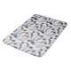Eine Badematte mit einem schönen Muster. Kiefernzapfen, Federn, Kiefernnadeln und Beerensprigs. Rustikales Aquarelldesign.