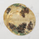 Eine schöne Weihnachtskarte, die an alle Ihre Freunde und Familienmitglieder geschickt werden kann, beinhaltet eine runde Karte mit braunem Texturhintergrund, Kiefernfüße, Baumzweige und anpassbarem Text, der auf der Vorderseite ein fröhliches Weihnachten, den gleichen strukturierten braunen Hintergrund, Kiefernfüße, Äste und Birke mit einem anpassbaren Bereich zum Hinzufügen Ihres Familiennamen, Vornamen und aktuellen Jahr auf der Rückseite.