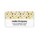 Adressetiketten mit einem niedlichen Muster mit Kiefernfüßen und heilig auf einem gelben Aquarellhintergrund mit kleinen weißen Kreisen, die sich um die Wand verstreut befinden.