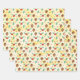Papierblätter mit einem niedlichen Muster mit Kiefernzapfen und heilig auf einem gelben Aquarellhintergrund mit kleinen weißen Kreise, die verstreut sind.