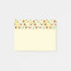 Sticky Noten mit einem niedlichen Muster mit Kiefernzapfen und heilig auf einem gelben Aquarellhintergrund mit kleinen weißen Kreise verstreut.