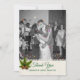 Stilvolle Winter Hochzeit Thema danke Ihnen Karte, mit Ihrem individuellen Foto die meisten der Front. Grafik eines Elfenbeinbands, auf der Unterseite mit einem hübschen grünen Kiefernholz mit Kiefernzapfen und Spitzen-Rahmen. Ein festliches grün-goldenes Muster bedeckt die Rückseite der Karte. Personalisieren Sie den grünen Text, und ersetzen Sie das Beispiel-Foto durch Ihr eigenes. Die passenden Hochzeitsprodukte stehen zur Verfügung.