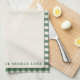 Add a touch of woodland charm to your kitchen with the Pine Needle Lane Kitchen Towel. Featuring a soft off-white center framed by a green gingham border, this towel is adorned with a delicate pine branch and pinecone illustration in the corner. The “Pine Needle Lane” label adds a signature touch, making it perfect for seasonal hosting, gifting, or everyday use.