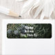Der Hintergrund dieses Adressetiketts ist ein Foto von Pinienbeeren. Diese runden Beeren sind eine schöne blaugraue Farbe, die in Haufen entlang der grünen Kiefernäste wächst. Der Hintergrund ist dunkel und rustikal, sodass Ihr Name und Ihre Adresse in weißem Schriftart auffallen.