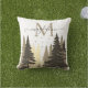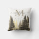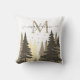 Pine Tree Forest Script Name Monogram Outdoor Pillow, eine gemütliche Ergänzung zu jeder Zuhause. Dieses elegante, mit Kiefernbaum-Silhouetten verflochtene Skript-Monogramm verleiht Sofas, Betten und Stühlen personalisierten Charme. Lassen Sie Ihre Dekoration mit naturlich inspirierter Eleganz ausklingen.