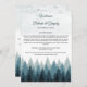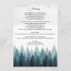 Ein blaues Kiefernwald mit Aquarellfarben. Dieses rustikale Winterdesign besticht durch verschiedene Blautöne und Aquarellakzente. Eine elegante abstrakte Illustration von Kiefern im Winter. Dieses Walddesign schafft ein elegantes rustikales Outdoor-Gefühl. Rustikales Hochzeitsprogramm Fandesign mit modernen Elementen. Auch die passenden Hochzeitseinladungen und andere Schreibwaren sind verfügbar.